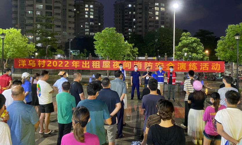 “请大家赶紧用湿毛巾或衣领捂住口鼻,防止烟雾中毒,并迅速有序沿走廊、楼梯一侧撤离……”8月8日晚,阴雨纷纷,大朗镇洋乌村某出租屋内,骤然响起消防警铃,一场消防应急疏散演练在急促的消防指令中拉开序幕。