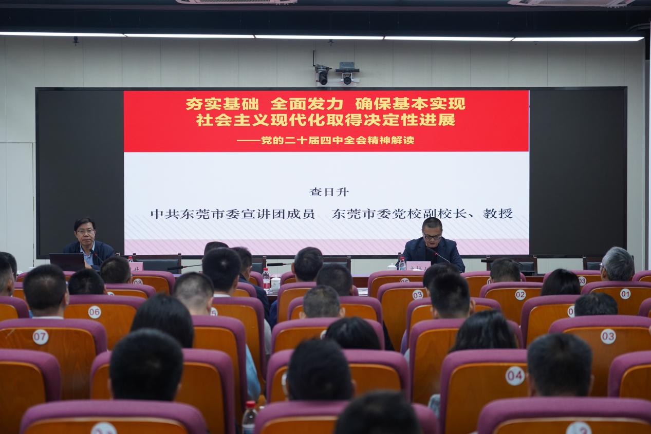 会上,查日升教授以《夯实基础 全面发力 确保基本实现社会主义现代化取得决定性进展——党的二十届四中全会精神解读》为题,从“十五五”历史方位、总体部署和重大任务等多个维度,对全会精神进行了全面解读、系统阐释和深度辅导,让我们对全会精神的核心要义和实践要求有了更加清晰的认识,让一幅幅清晰可感的“十五五”“路线图”在大家脑海中变成了“动员令”。